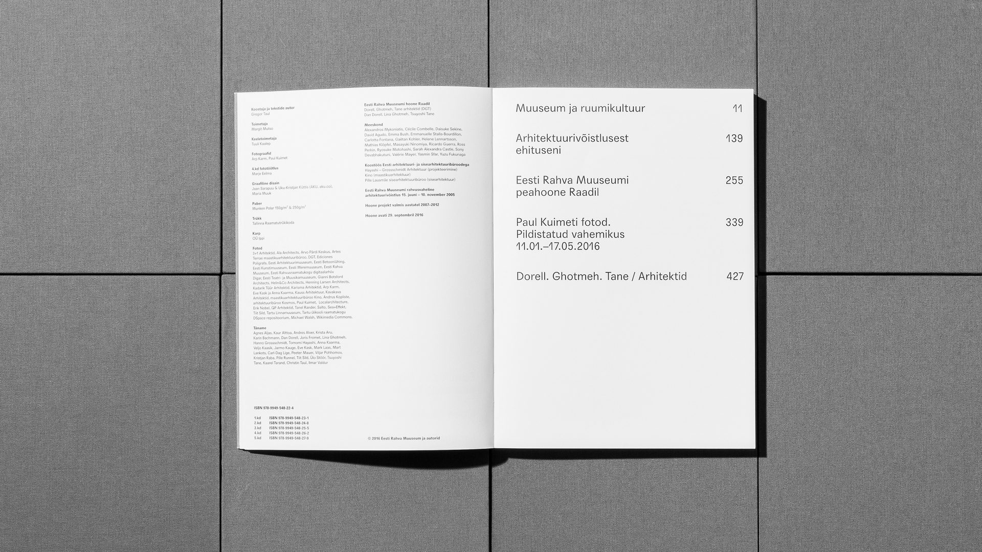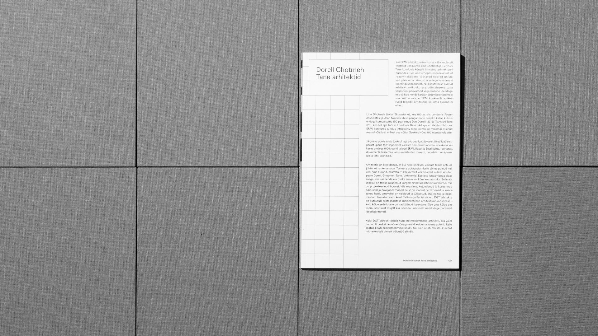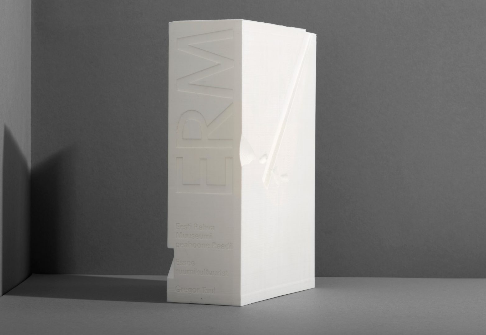 "The Estonian National Museum’s main building at Raadi: an essay on spatial culture" tells the story of the newly built national museum of Estonia. Gregor Taul's essay, accompanied by plenty of visual material, took the form of five booklets. Their decreasing thickness is a comment on the form of the new building.