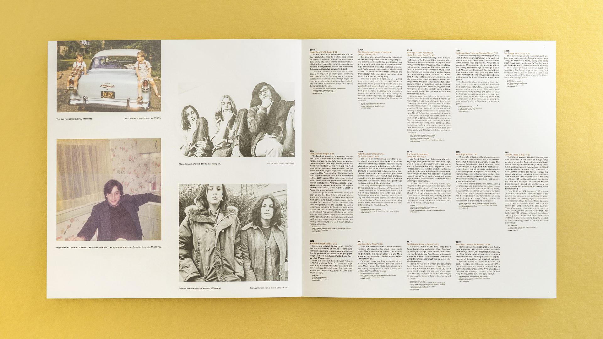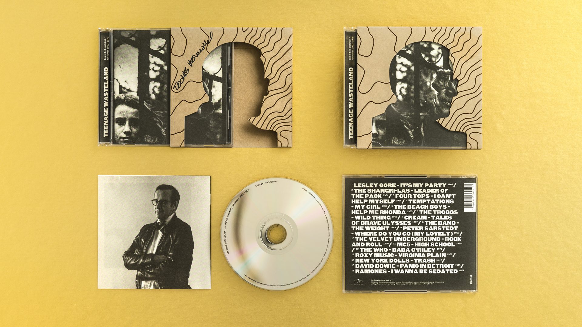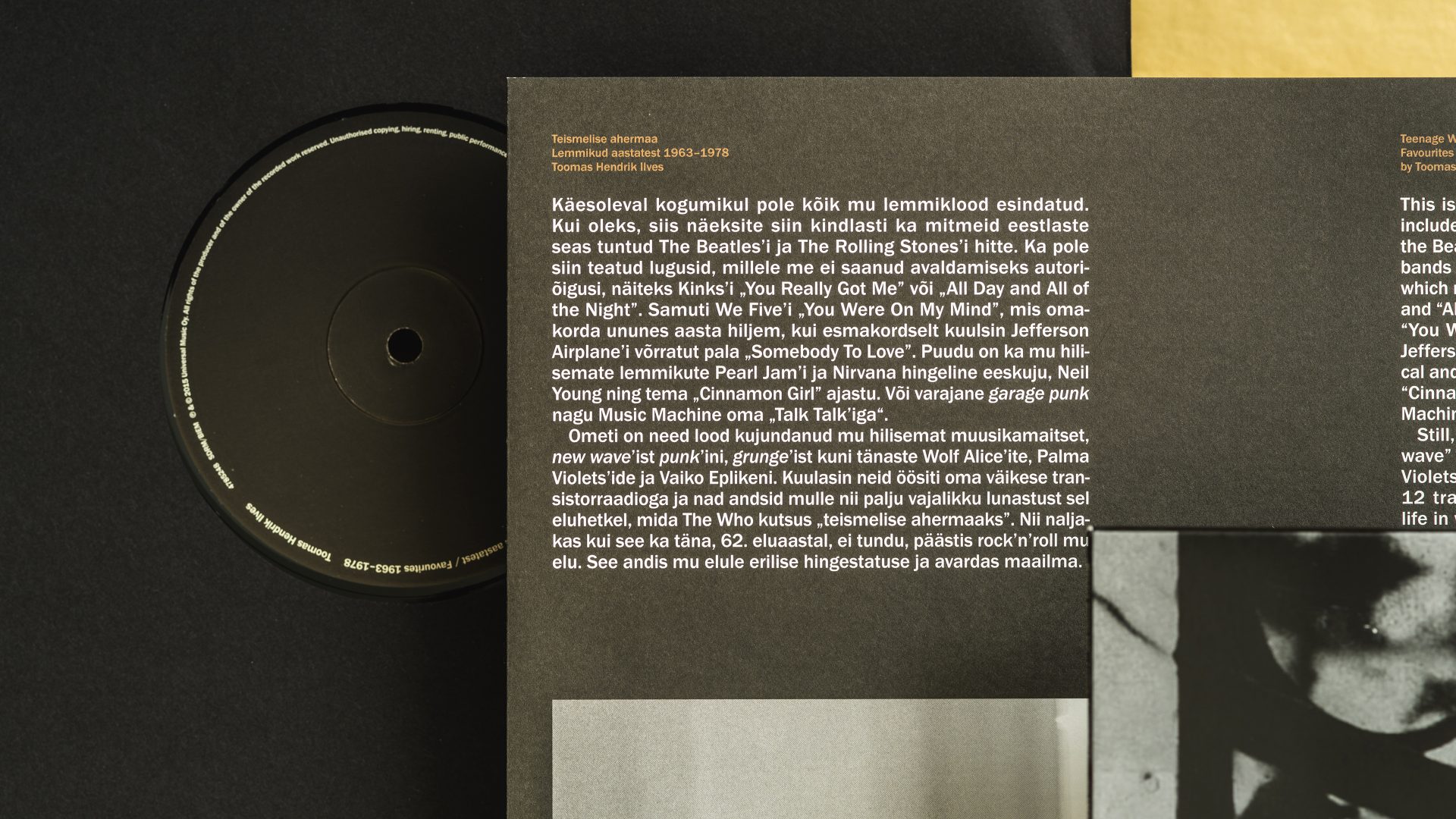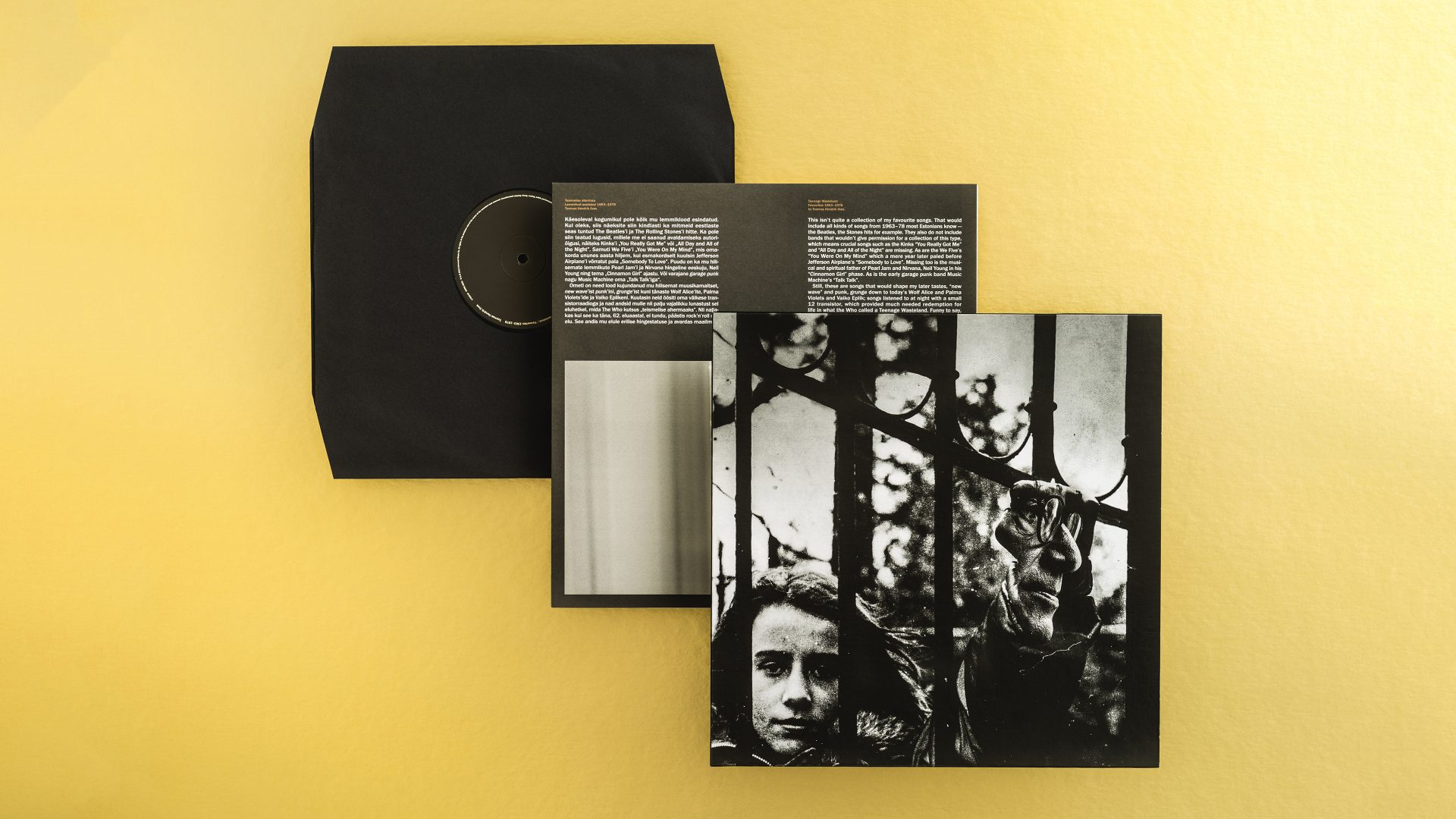 The compilation presents the teenage favorites of the Estonian president Toomas Hendrik Ilves on both CD and vinyl. Design consciously takes a back seat to the content – minimal use of colour, archival photographs and period correct typography help to make this first-of-its-kind musical document a coherent whole.